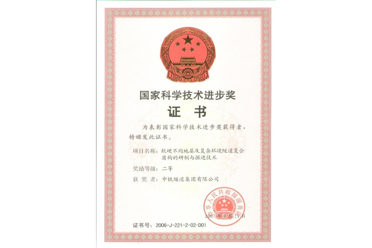 2006年國家科技進(jìn)步獎(jiǎng)二等獎(jiǎng)-軟硬不均地層及復(fù)雜環(huán)境隧道復(fù)合盾構(gòu)的研制與掘進(jìn)技術(shù)