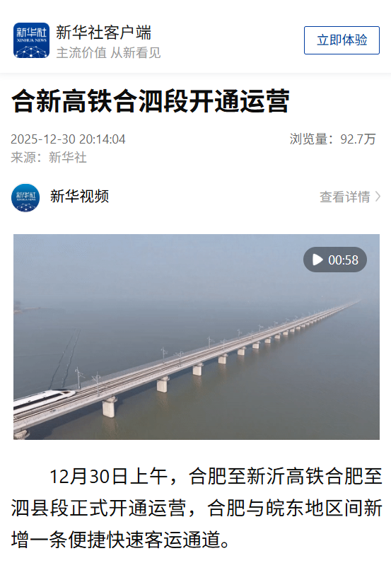 【新華社】合新高鐵合泗段開通運營