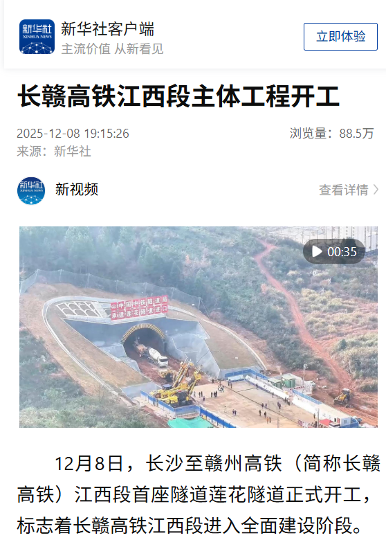 【央視新聞客戶端】長贛高鐵江西段主體工程開工建設(shè)