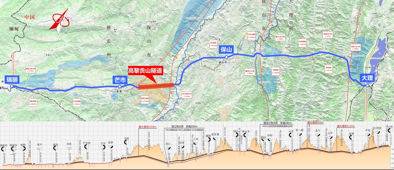 根據(jù)設(shè)計提供的地質(zhì)勘探資料,高黎貢山隧道存在高溫?zé)岷Α④泿r大變形、涌水、斷層破碎帶、巖爆、巖溶、蝕變巖及節(jié)理密集帶、活動斷裂帶、高烈度地震帶、放射性、有害氣體、滑坡、偏壓、順層等多種地質(zhì)條件,隧道最大埋深1155米,穿越19條斷層,被譽為“地質(zhì)博物館”。在“地質(zhì)博物館”里打隧道難度不言而喻。